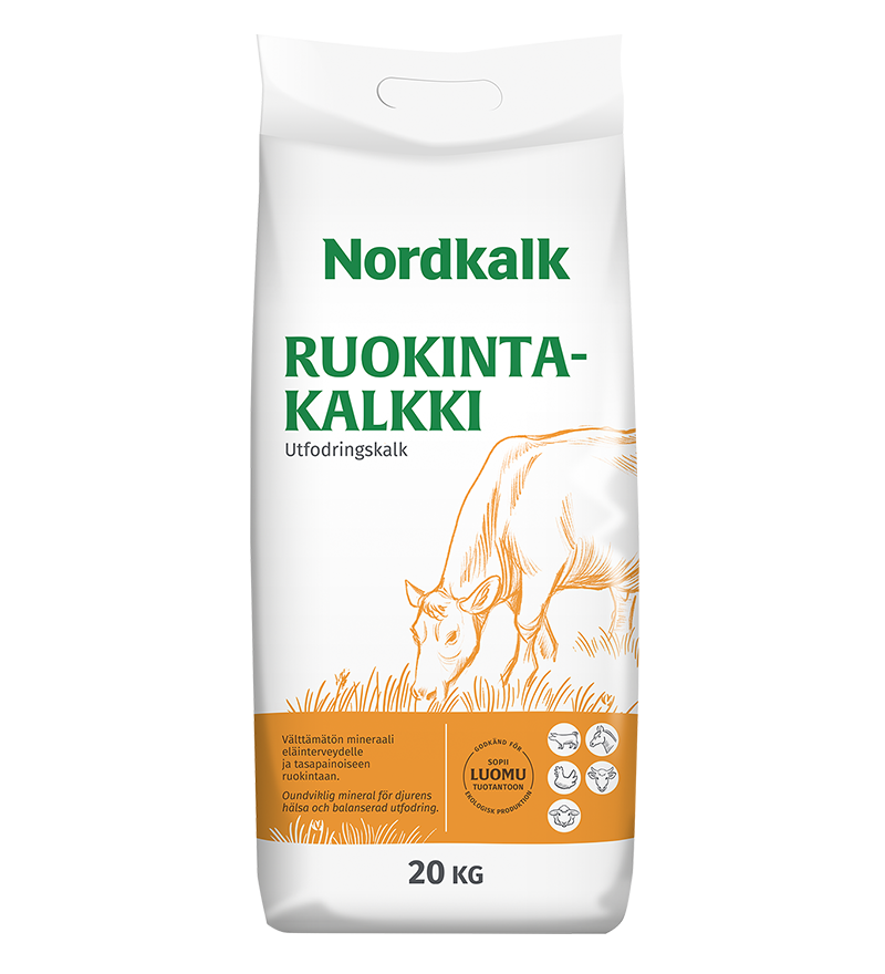 Nordkalk Aito ruokintakalkki soveltuu nautojen, sikojen, siipikarjan ja hevosten ruokintaan. Tuote on jauhettu 1 mm hienouteen ja se sisältää kalsiumia 36%. Pakkauskoko muuttunut 40 kg-> 20 kg (kuva vielä vanha) Pakkauskoko 20 kg/säkki. Lavakoko 48 säkkiä.